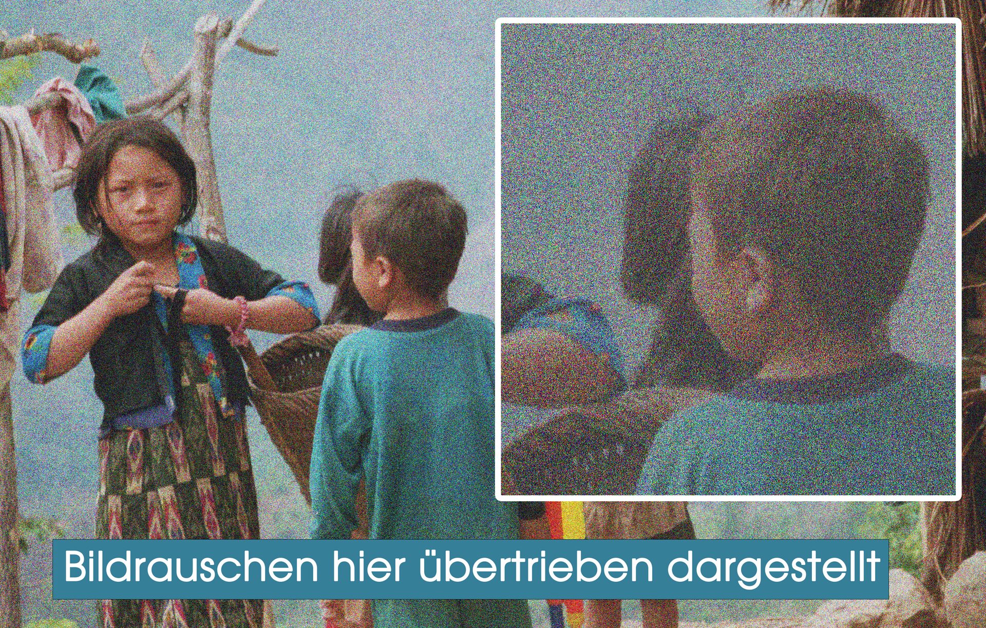 Dabei muss aufgepasst werden, dass die Filmkörnung (zeigt sich als Bildrauschen) nicht zu stark sichtbar wird.